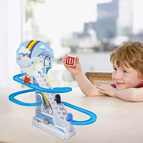 Xie Giocattoli elettrici per Le Scale del Pinguino, Scivolo Rotante con Suono e Luce, Giocattolo Elettrico per Bambini per Le Scale del Pinguino, Giocattolo per vagoni ferroviari assemblati con Un