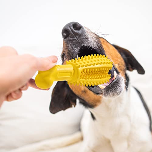Denti puliti efficacemente: il dentifricio o l'attrattivo per cani può essere applicato nel corridoio per la pulizia dei denti per attirare l'interesse del cane e realizzare veramente la funzione del cane che si lava i denti da solo mentre gioca. Pulisci completamente lo sporco e le pietre dei denti anteriori del cane.