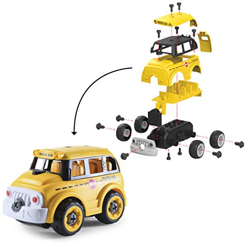 Giocattoli smontati con Trapano Elettrico, Converte in Auto telecomandata, Giocattolo smontabile, Scuolabus Rimovibile 3 in 1, Taxi e Motore del Treno, Giocattoli Regalo per Ragazzi 3,4,5,6 Anni