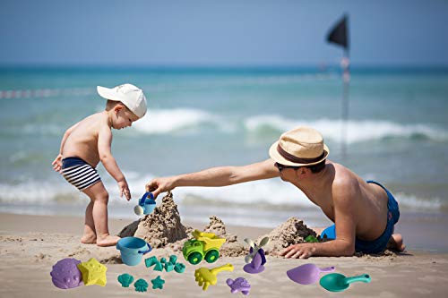 Giocattoli da spiaggia, 20 pezzi, camion, secchio, annaffiatoio, ruota idraulica, molti stampi di sabbia in robusto materiale TPU. Per la spiaggia, il bagno, il giardino o la sabbiera (Set 1)