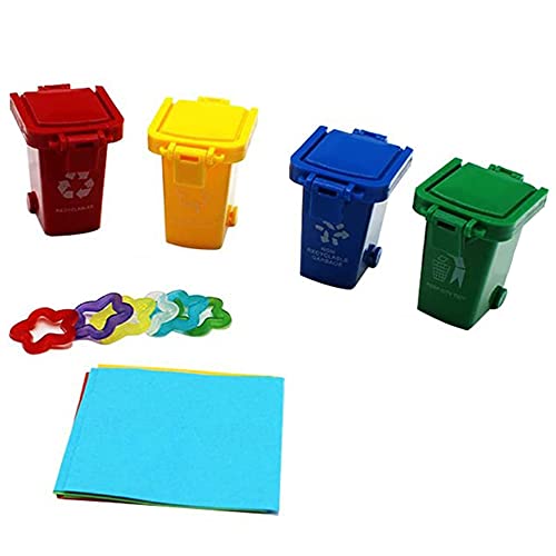 【Confezione】Il set di giocattoli per pappagalli include 4 bidoni della spazzatura, 5 anelli a stella a cinque punte e 8 carte colorate, tutti gli accessori consentono al tuo pappagallo di completare felicemente il gioco di smistamento dei rifiuti.