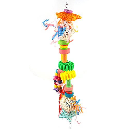 1, legni di tronchi non tossici e sicuri, alta qualità dei materiali. È un giocattolo ideale per gli uccelli!