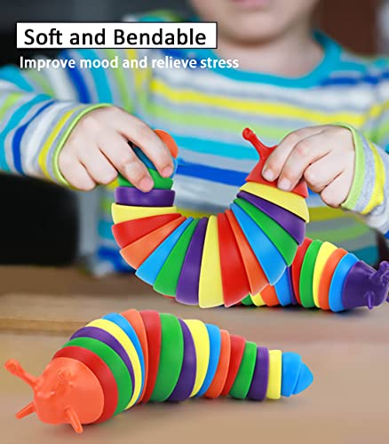 Giocattolo Fidget Slug Articolato, Fidget Slug Giocattolo Sensoriale Anti Stress, 3D Fidget Slug Toy Stampato, Giocattolo Flessibile Di Stim Fidget per Rilassarsi, Colori Casuali dell'arcobaleno