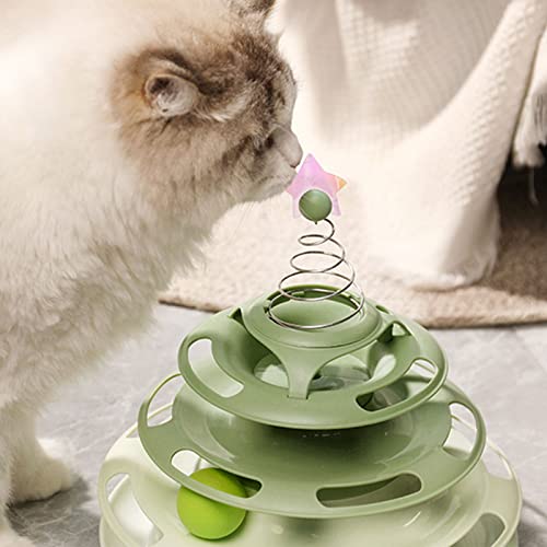 Giocattolo per gatti a 3 livelli Torre giocattolo interattivo per gatti da interno con 3 palline a molla Teaser divertente gioco per gatti giocattolo per gatti giradischi torre palla pista cerchio