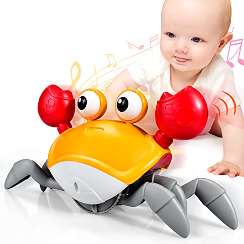 Giocattolo Granchio Strisciante per Bambini 1-3 Anni, Granchio che Cammina Neonato, Musica e Luci LED, Evitamento Automatico degli Ostacoli, Ricaricabile, Ideale Regalo per Bambini 1 2 3 Anni