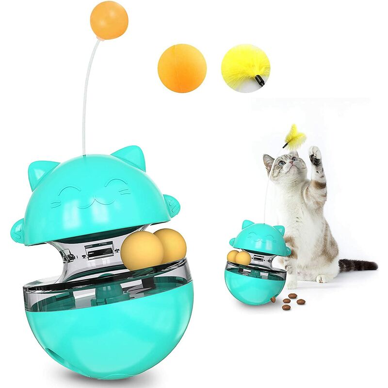 Molto attraente: due palline orbitanti e un divertente bastoncino per gatti attirano i gatti a graffiare e giocare. Il divertente bastoncino per gatti può essere smontato e utilizzato separatamente. Gli oggetti in movimento possono stimolare istinto di caccia del gatto. Sicuro e durevole: realizzato in plastica ecologica (ABS), inodore e facile da pulire. Il materiale in policarbonato trasparente al centro consente al gatto di vedere facilmente il panino alinterno. Mangiatoia regolabile: a differenza di altri giocattoli per gatti sul mercato, la dimensione dei due fori di alimentazione può essere regolata in modo da poter controllare il tuo velocità di alimentazione delanimale. Alimentazione sana: Quando giocano, i gatti mangiano giocattoli come spuntino. Ciò incoraggia i gatti a continuare a cacciare, a fare più esercizio fisico e a mantenere il loro corpo sano. Nessuna batteria richiesta: il portabatterie è progettato per garantire che non consumi batterie quando ruota di 180 gradi