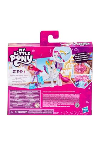 CUTIE MARK MAGIC CON ZIPP: questo pony da 7,5 cm con pelo bianco e criniera rosa è ispirato alla serie ""My Little Pony: Make Your Mark"" e include un ciondolo Cutie Mark inseribile a forma di fulmine e accessori per i capelli