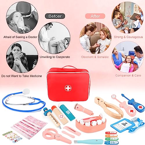 Set Giocattolo Medico per Bambini,Valigetta Dottore Bambini,Giocattolo Medico in Legno per Bambini con Accessori come Stetoscopio,Siringa,Camice Medico,Regalo Giocattolo di Simulazione per 3-10 Anni