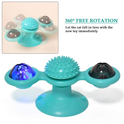 Giocattolo del Mulino a Vento per Gatti,Giocattolo Giradischi per Gatti,Gatti Giocattolo da Massaggio con Palla Lucida Rotante e Erba Gatta,per Solletico e Pulizia dei Denti e Sollievo Dall'ansia,Blu