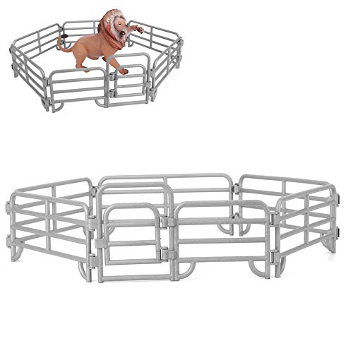 Giocattolo porta recinzione fattoria, 16 pezzi giocattoli recinzione in plastica fai da te decorazione giardino fattoria ranch recinzione argento con cancello per bambini casa giochi(PL127-A)