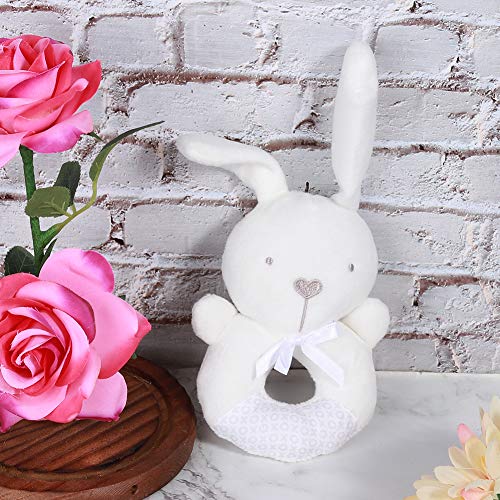 Giocattolo a sonaglio a forma di bambino O, campane a mano Cartoon peluche a sonagli bambola giocattolo confortante per bambino 0-3 anni(coniglio)