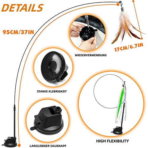 Giochi per Gatti, Interattivi per Gatti, Intercambiabile Giochi per Gatti con Piume, Gioco Gatto Piume Giochi, Bacchetta di Gatto con Campana e Ventosa, Cat Toy per Giocare e in Casa Esercizio Interno