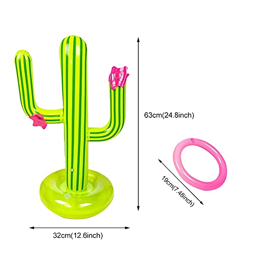 Set di giochi gonfiabili per cactus con anello di cactus, giochi per biliardo, giochi gonfiabili, con 4 anelli, set di anelli galleggianti per feste e giochi in piscina