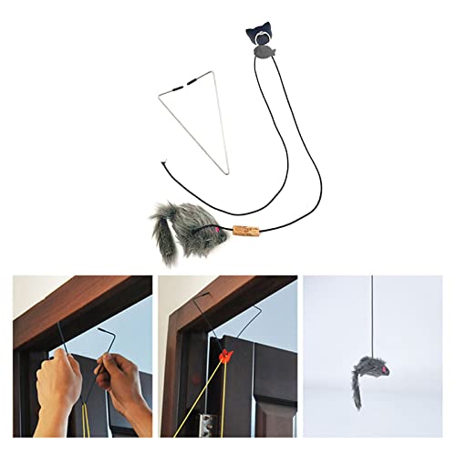Giochi interattivi per gatti Filo rimbalzante con corda elastica Topi e animali giocattolo Gancio triangolare in metallo da appendere alla porta Bacchetta del topo gonfiabile per gatti