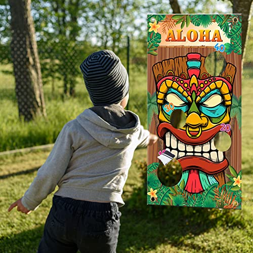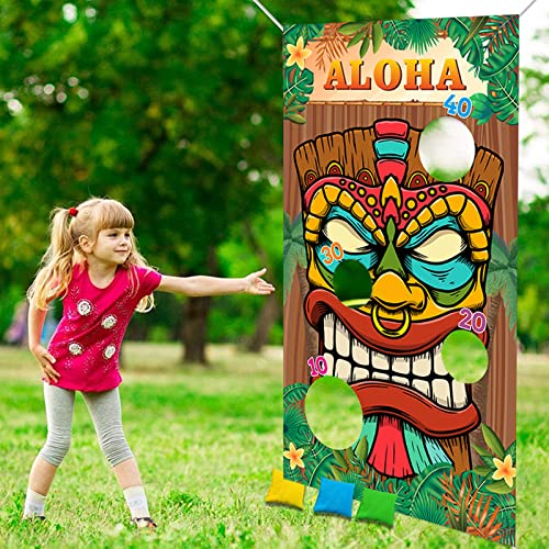 Giochi di lancio hawaiani con 3 pezzi di sacchi di fagioli Hawaii Bean Bag Toss Game Banner di lancio per la spiaggia estiva Hawaiian Party Decorations