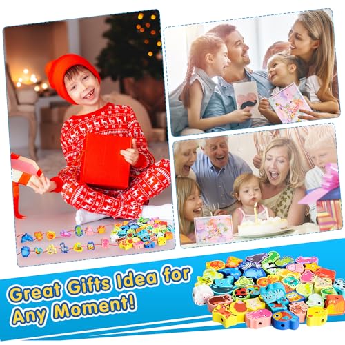 【Giocattolo per Abilità Motorie Sicuro e di Alta Qualità】 Per la sicurezza dei genitori e gioia bambini. Prestiamo particolare attenzione alla sicurezza e alla qualità delle nostre perline per allacciatura, che sono leggere, tagliate al laser, finemente levigate e lucidate su tutti i lati per garantire un'esperienza di utilizzo fluida e confortevole. Il giocattolo da infilare adotta una vernice a base d'acqua ecologica con colori brillanti e buona lucentezza