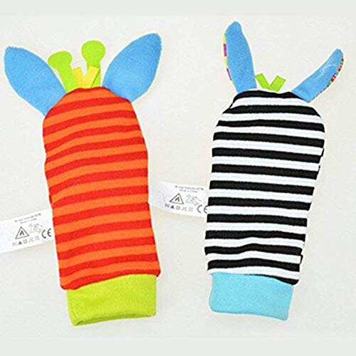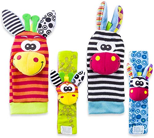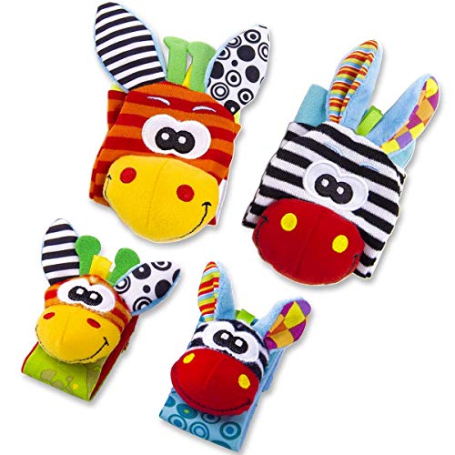 Giochi Neonato Sonagli Sensoriali per Bambini, Calzini da Polso Simpatici Animaletti Developmental Soft Toys Bambole per Neonati Neonato, 4 Pezzi