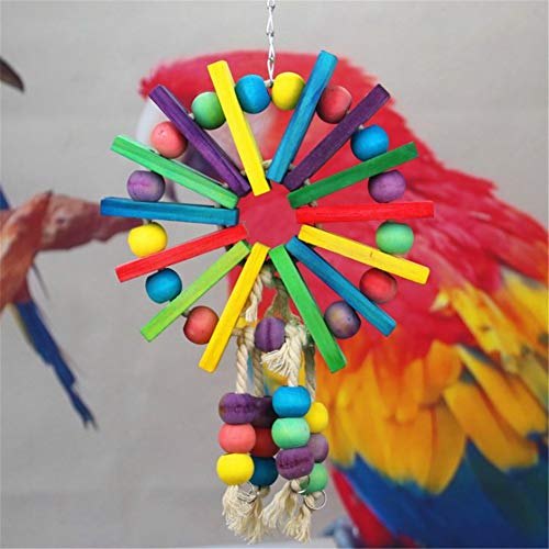 Giochi Pappagalli Giochi per Pappagalli Forma di Ruota Panoramica Corda di Cotone Trucioli di Legno Colorati Giocattolo Pappagallo per Pappagalli Ara Uccelli d'Amore Canarini Fringuelli 22 * 36cm