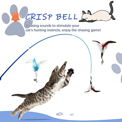 Giochi con Piume per Gatti con Campana, Giochi Gatti Interattivi con 1 Bacchetta Telescopica, cannetta bird piume interattivi gatto, Giocattoli Interattiva per Giocare e Fare Esercizio Interno