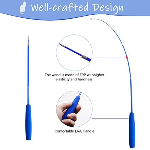 【Bacchetta di Gatto Retrattile】La bacchetta può estendersi da 30 cm a 85 cm. È molto leggero, flessibile e facile da conservare. La bacchetta leggera e confortevole ti fa persino sederti sul divano per giocare con i tuoi gatti con i giochi per gatti piccoli!