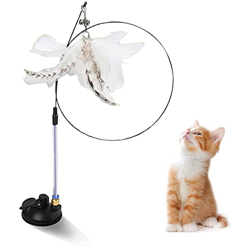 Giochi con Piume per Gatto, Giocattolo per Gatto Canna da Pesca, Giocattoli Bastone Gatti, Giocattoli per Gatti con Campana e Ventosa, Giocattolo Interattivo per Gatti, per Giocare Fare Esercizio