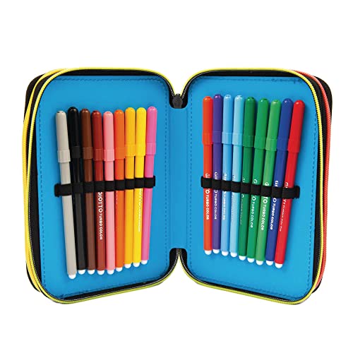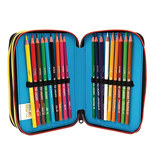 Giochi Preziosi - Astuccio a 3 Scomparti Pera Toons - Contiene 18 Matite Colorate, 18 Pennarelli e altri Pratici Oggetti per la Scuola,misure 13 l x 19,5 h x 6,5 p cm
