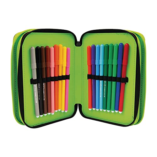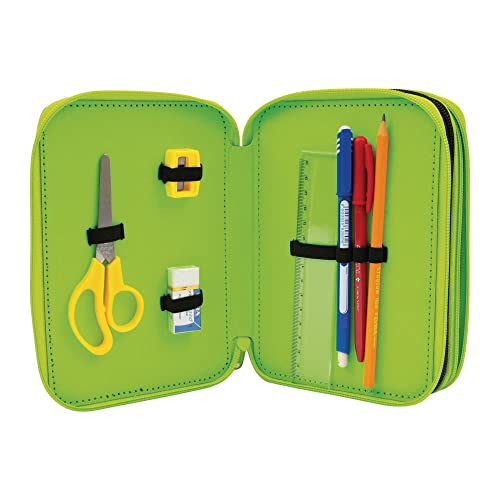 CONTENUTO: All'interno dell'astuccio 3 scomparti troveremo tutto l'occorrente per vivere le avventure di un nuovo anno scolastico: 18 matite colorate, 18 pennarelli, 1 penna a sfera blu, 1 penna a sfera rossa, 1 matita, 1 gomma, 1 righello, 1 temperino, 1 paio di forbici.