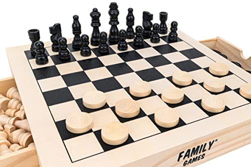 3 Giochi da tavola Classici in Legno - Dama, Scacchi, Filetto - Family Games - Globo Giocattoli - 41160