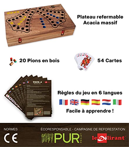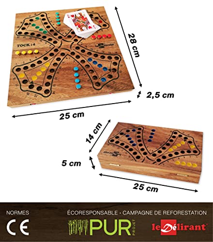 GIOCO DI TOC a 4 colori o Tock Versione da 2 a 4 giocatori. Gioco da tavolo familiare in legno massiccio eco-responsabile alle norme CE. Marca Le Délirant, giochi da viaggio, Parcheesi Canadesi.