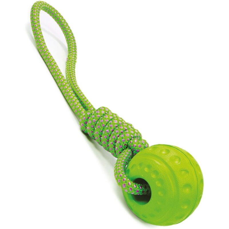 Gioco galleggiante in EVA e nylon palla con nylon modello Launch per cani Marca: Record Formato: pallina 7,5 cm e corda 25 cm Colori: verde, arancio, rosso Gioco galleggiante dal design facile da lanciare, anche a lunga distanza, da afferrare, ideale per giochi di tira e molla e riporto, anche in acqua. Ideale per cani molto attivi.