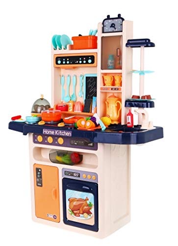 Gioco d'Imitazione - Cucina Giocattolo per Bambini, Set da Cucina Giocattolo con Cibo e Accessori, Funzione Acqua Reale, Effetti Sonori e Luminosi - 65 Pezzi