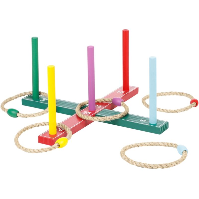 Questo set da gioco in legno della HI è perfetto sia per i bambini che per gli adulti. Il gioco di lancio è l'ideale per giocare con i vostri bambini o amici durante picnic, festival di carnevale, feste in giardino o altri eventi esterni. Allena e promuove la coordinazione occhio-mano. Il set di gioco è notevolmente compatto e leggero, il che lo rende facile da trasportare e riporre. Colore: Multicolore Materiale: Legno Dimensioni manico: 2 x 18 cm (Diam. x A) Dimensioni della base: 42 x 5 x 2 cm (L x P x A) Include 5 anelli Base con stampa SKU: 435283