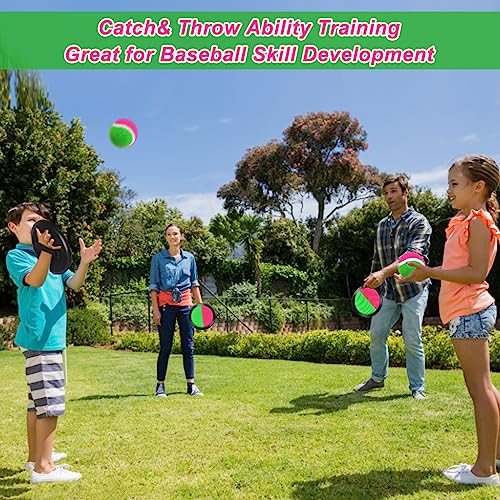 ⚾【Cattura Racchette Palline Set】 Il gioco di lancio della palla viene fornito con 4 palette e 2 palle velcro. Fino a 4 persone possono giocare contemporaneamente in questo gioco di catch ball, sufficienti per far giocare le tue famiglie.