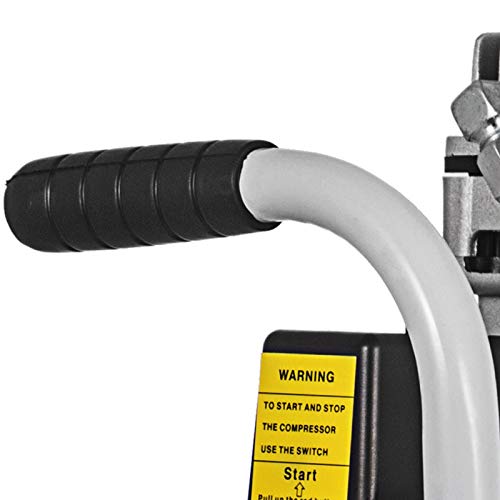 【LEGGERO E COMPATTO】 - Dotato di coprigambe in gomma antiurto e ruote scorrevoli, il compressore compatto è facile da trasportare e trasportare.
