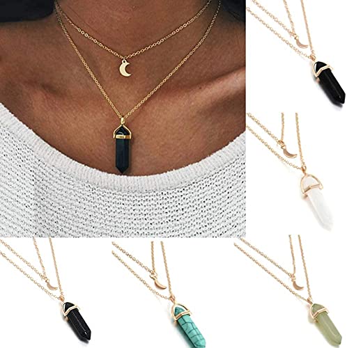 Gioielli per l'anniversario di matrimonio di San Valentino Luna di moda Ciondolo in pietra con prisma esagonale Catena a doppio strato Collana da donna, Regalo per donna Collana da bambino per bambin