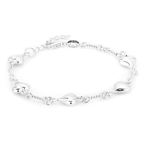 Gioielli in argento sterling Vanbelle - Placcato in rodio con timbro 925 - Bracciale a cuore gonfio cucito in sequenza - Elegante realizzato a mano - per donna - 6,5" di lunghezza + 1" di estensione