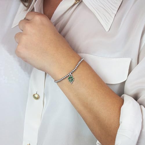 Gioielli DOP - Bracciale Boule con Mini Ciondolo Quadrifoglio - Bracciale e Charm in Argento 925 - Mini Ciondolo con Smalto Antigraffio - Fatto a mano in Italia - Garanzia di 2 anni