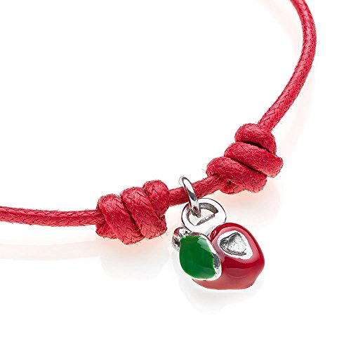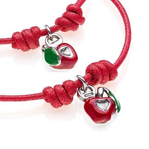 Gioielli DOP - Bracciale con Cordino in Cotone Cerato - Coppia Bracciali con Charms Cuore Mela - Smalto AntiGraffio - Fatto a Mano in Italia - Argento 925 - Garanzia di 2 Anni