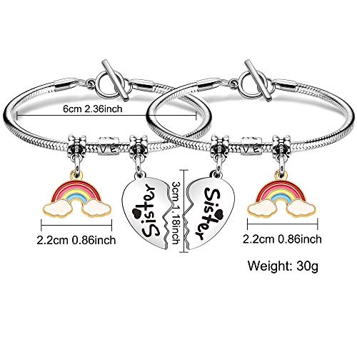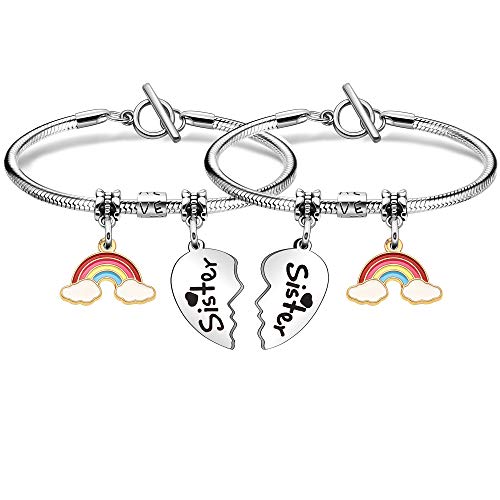 Gioielli da donna per sorella da sorella, 2 pezzi, braccialetto a forma di cuore spaccato per Natale, compleanno, arcobaleno.