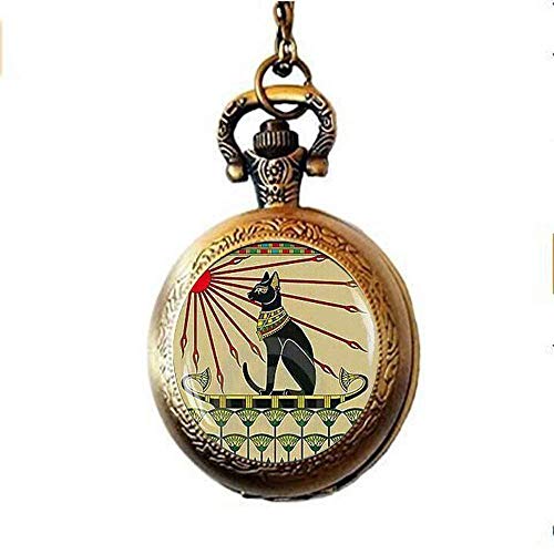 Gioielli di gatto egiziano, gioielli Art Nouveau gatto, Dea Bastet orologio da tasca collana, gioielli gatto Egitto