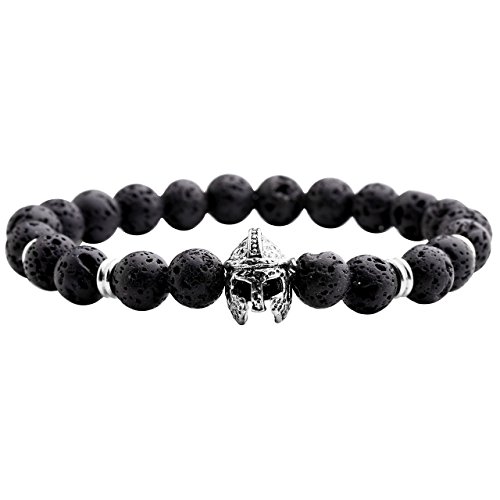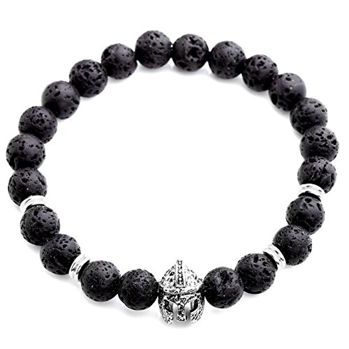 Gioielli JOVIVI, Lava-bracciale da donna uomo Reiki-terapia energia Bracciale 8 mm Lava leinwandbilder-braccialetto di perline, argento Sparta-casco Stil