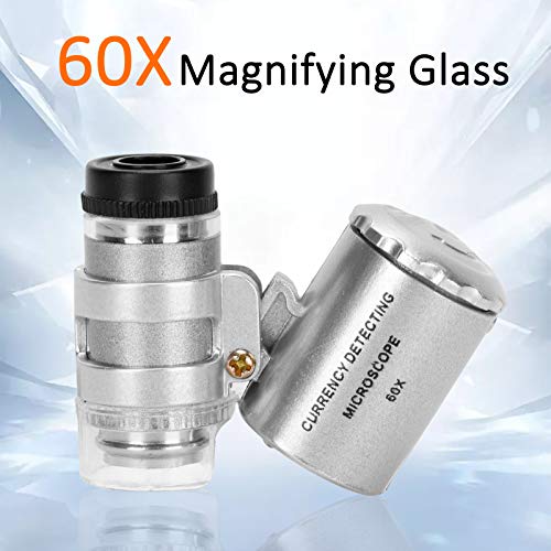 Gioielli Lente d'ingrandimento, LED regolabile Rivelatore di valuta lampada con ingrandimento 60X per gioielli perito per identificazione gioielli