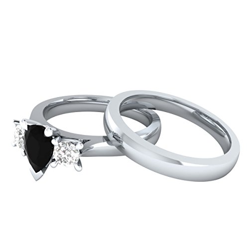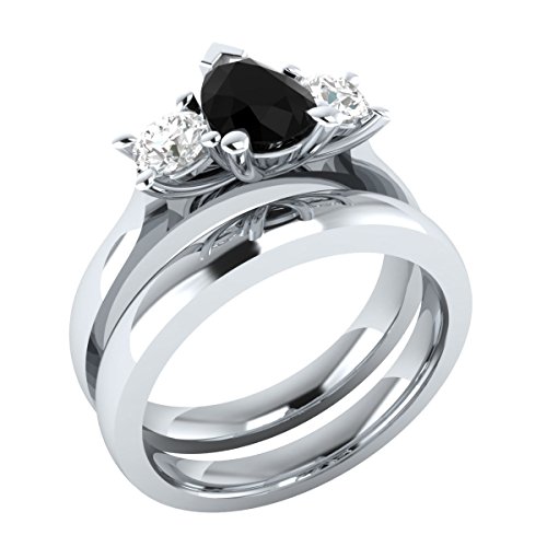 RS gioielli 1.29 ct Pear & rotondo nero in argento Sterling 925 placcato in oro bianco 14 K con zaffiro e spinale bridal set di anelli per donna, argento, 11, cod. RSR1653