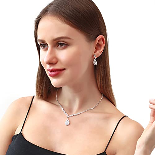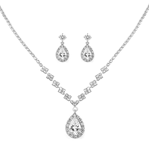 Set di gioielli da sposa in argento con cristalli e collana girocollo con strass per donne e ragazze No.12