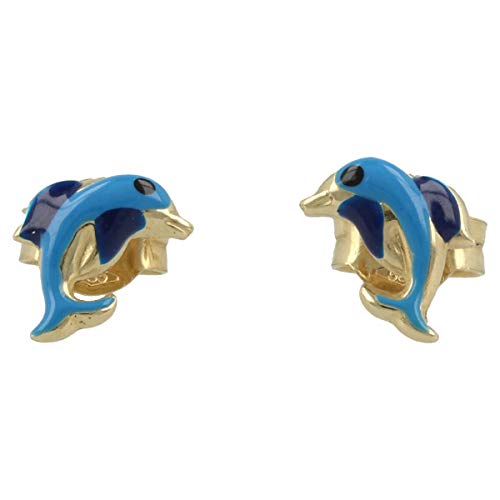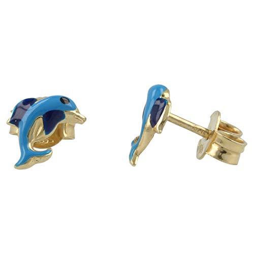 Gioiello Italiano - Orecchini con delfini in oro giallo, per bambine