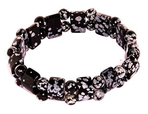 Il bracciale in ossidiana con fiocco di neve misura circa 15 mm di larghezza e tirato su una robusta gomma.