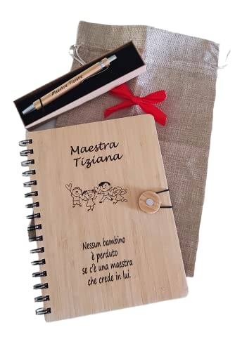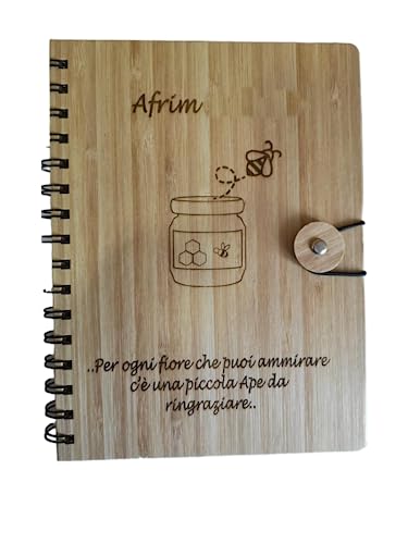 Giomel Diario Personalizzato Taccuino in Bambu' con Incisione Regalo Particolare 21,5 x 16 cm con Anelli, Laurea Compleanno Comunione 160 Pagine Carta Riciclata