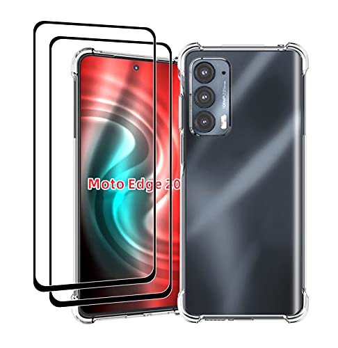 GIOPUEY Cover Compatibile con Motorola Edge 20, [con 2 Pezzi Vetro Temperato] TPU Ultrasottile HD Case, Protezione del Cuscino d'Aria [Non Facile da Ingiallire] - Trasparente