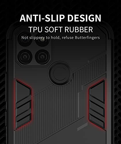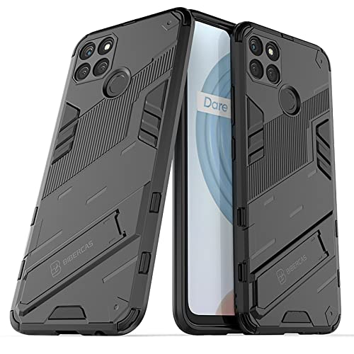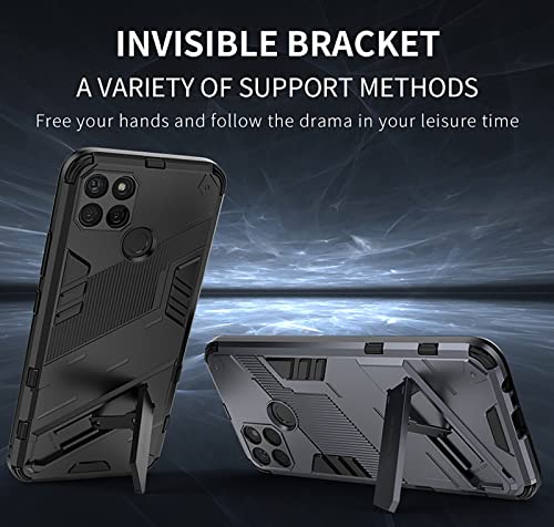 GIOPUEY Cover Compatibile con Realme C25Y/Realme C21-Y, [Doppia Protezione] Morbido TPU & Ditta PC con Staffa, Antiurto Protettiva Custodia, Protector Fotocamera - Nero