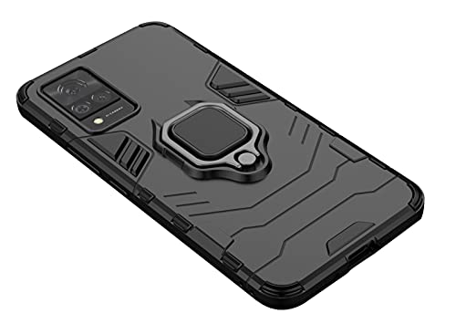 GIOPUEY Cover per Vivo V21 5G, Ultrasottile 2 in 1 Custodia in TPU PC, Funzione di Staffa Cellulare Custodia [Slittata] [Resistenza alla Caduta] Case - Nero